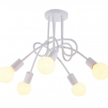 Stílusos mennyezeti csillár 5 fényforrással és E27 foglalattal, amely modern loft hangulatot és bőséges fényt visz az otthonába. A fém szerkezet tartós, könnyen szerelhető, és kompatibilis a hagyományos és dekoratív izzókkal is. A kettős kapcsolóra köthető kialakítás kényelmes fényerőszabályozást tesz lehetővé.