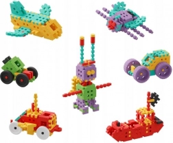 A MINI WAFFLE KONSTRUKTOR sorozat rengeteg ötletet és órákon át tartó kreatív szórakozást kínál. A MAJSTER készlet 200 színes, rugalmas elemet tartalmaz 17 formában, amelyekkel a gyerekek könnyedén építhetnek egyedi járműveket, repülőket, hajókat és robotokat, miközben a logikát és a finommotorikát is fejlesztik.
