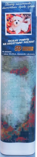 Gyémántfestés – fehér kiskutya 30 × 40 cm