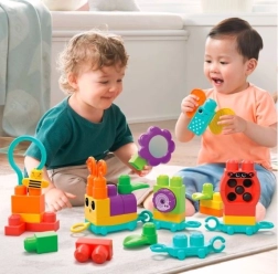 A készlet 30 nagy építőkockát tartalmaz, ebből néhány speciális elemet, amelyeket 1-3 éves gyerekek fejlesztésére terveztek. Nyolc szenzoros funkciót tartalmaz a tapintási, látási és hallási érzékelés fejlődésére. A kockák kompatibilisek minden Mega Bloks játékkal, amely kiterjeszti a játékos tevékenységek lehetőségeit.