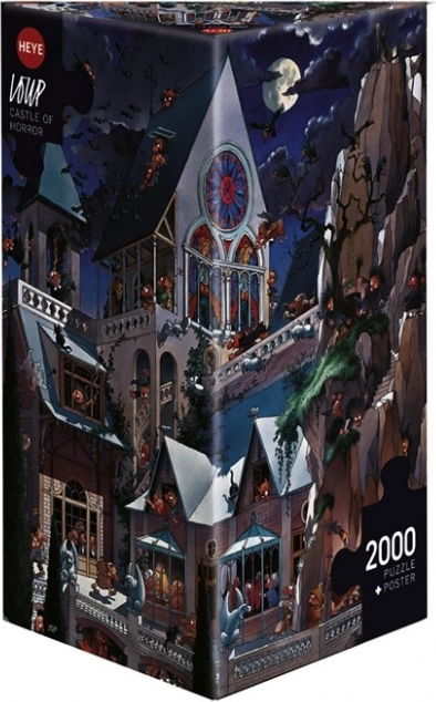 Élvezze a hosszú órákon át tartó szórakozást a karikaturista Loup stílusos kirakójával. Ez a nagy kirakó kísértetkastély motívummal 2000 darab-ból áll, szokatlan, háromszög alakú dobozban érkezik, és posztert is tartalmaz mintának. Az összeállított kép mérete megközelítőleg 68 × 96 cm.