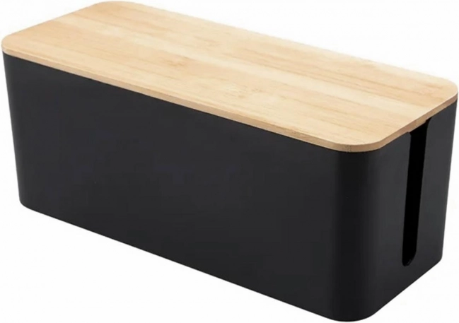 A praktikus oldalsó nyílások kényelmes kivezetést tesznek lehetővé a kábelek számára törés és csavarodás nélkül. A dizájnos, fa dekorú fedél jól illik a modern és a skandináv enteriőrökhöz is, és az egyszerű kábelrendező dobozból esztétikus kiegészítőt varázsol.