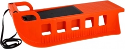 Könnyű és masszív Kamzík műanyag szán praktikus húzópánttal, kapaszkodókkal és ülés alatti tárolórekesszel. A stabil menetteljesítményt a lábtámaszként szolgáló, szélesített talpak biztosítják, ideális rekreációs sporthoz. Ajánlott maximális terhelés 80 kg, 3 éves kortól ajánlott.