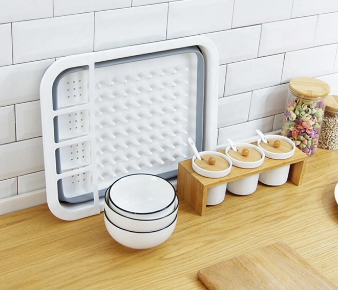 Fedezze fel az ideális konyhai segítőt az összecsukható szilikon edényszárító formájában! Ez a szárító könnyedén kinyitható néhány másodperc alatt, és összehajtva rendkívül kevés helyet foglal el. Nagyszerű megoldás, ha helyszűkében van ételei és zöldségei mosásához vagy egykamerás mosogatók esetén.