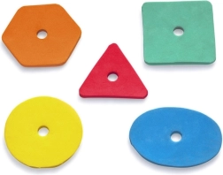 A speciális nyílásokkal ellátott ív és az 5 színes habforma segít a gyerekeknek felismerni a színeket és formákat, miközben fejleszti a finommotorikát és a koordinációt.