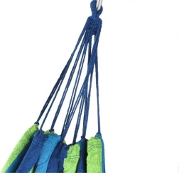 A kényelmes, rudak nélküli függőágy stabil és biztonságos fekvőfelületet kínál egy vagy két személy számára. A pamut és poliészter keveréke kellemes tapintású, ugyanakkor tartós és könnyen karbantartható – az anyag gépben mosható. A légáteresztő szerkezetnek köszönhetően a pihenés még forró napokon is komfortos.