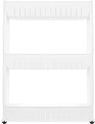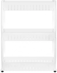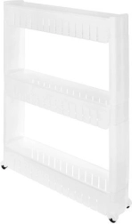 Ez a mobil konyhai polc kerekeken tökéletes a szekrények közötti keskeny terek kihasználására. Tartós műanyagból készült, három mély polcot tartalmaz a szükséges tárgyak rendszerezésére.