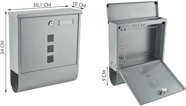 A levelek bemenete speciális fedéllel van ellátva, amely védi a küldeményeket az időjárás hatásaitól. A formátum mérete igazodik az A4-es méretű levelekhez is.