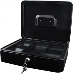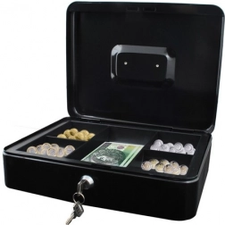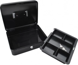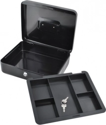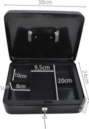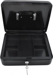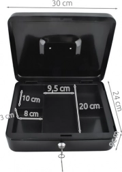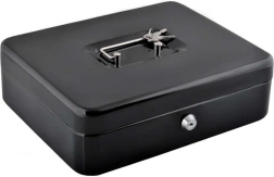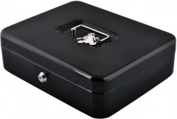 Ez a nagy, elegáns fekete színű fém pénzkazetta ötvözi a biztonságot, az áttekinthetőséget és a tartósságot. A lakkozott acélburkolat és a masszív belső zsanérok megóvják a tartalmat a sérüléstől és az illetéktelen hozzáféréstől, míg a kulcsos zár (2 kulcs a csomagban) megbízható zárást biztosít.