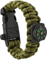 Praktikus 5 az 1-ben túlélő karkötő outdoorhoz, túrázáshoz és kempingezéshez. Egyesíti a paracord zsinórt, a kést, a tűzgyújtót, az iránytűt és a sípot egyben. Vízálló, könnyű, és kényelmes csattal rendelkezik a biztonságos csuklón viseléshez vagy hátizsákra rögzítéshez.