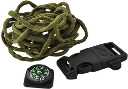 - paracord zsinór, kés, tűzgyújtó, iránytű, síp