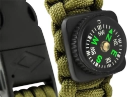 - 5 funkció egyben: paracord zsinór, kés, tűzgyújtó, iránytű és síp.