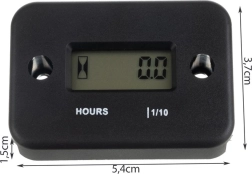 Kompakt digitális üzemóra-számláló a motor üzemidejének pontos követéséhez egészen 9999,9 óra értékig, 0,1 órás felbontással. Univerzális megoldás 2 ütemű és 4 ütemű belső égésű motorokhoz – ideális motorkerékpárokhoz, fűnyírókhoz, quadokhoz, áramfejlesztőkhöz és robogókhoz. A tartós kialakítás ütésálló és vízálló, működés 85 °C-ig. Egyszerű telepítés és jól olvasható LCD kijelző a megbízható karbantartás-követésért.