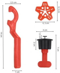A készlet kiválóan alkalmas minden típusú csempe szintezésére. Biztosítja a gyors és precíz manipulációt a 3 - 16 mm vastagságú csempékkel.