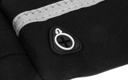A három zsebre osztott, átgondolt kialakítás rendezetten tartja az apróságokat: a telefon és az iratok a cipzáras zsebbe, a kulcsok a tépőzáras zsebbe, az energiaszelet a nyitott zsebbe kerülhet. A fülhallgató-kivezetés lehetővé teszi a zenehallgatást zavaró kábelek nélkül, a fényvisszaverő szalag pedig növeli a láthatóságot szürkületben és sötétben. A gumipántok biztonságosan tartják a vizespalackot, így a hidratálás mindig kéznél van.