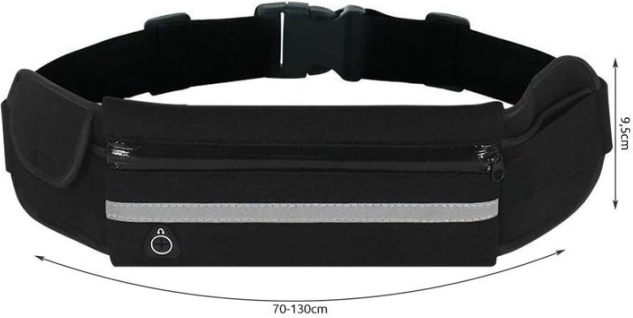 Ez a fekete futó övtáska futáshoz, fitneszhez és tempós sétához készült, kényelmet és funkcionalitást nyújtva. A tartós, puha neoprén kellemesen idomul a testhez, az övtáska ultrakönnyű (mindössze 70 g), és nem zavar mozgás közben. A 70–130 cm között állítható derékpánt könnyen a testalkathoz igazítható.