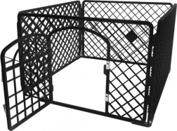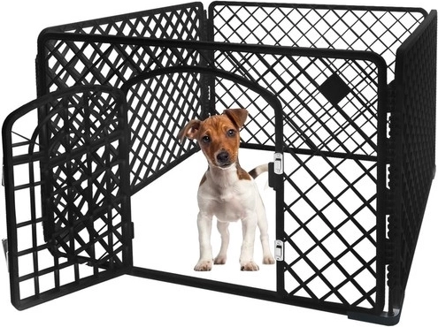 Praktikus és univerzális kifutó kutyáknak, kölyköknek és kisállatoknak, amely biztonságos teret nyújt otthon és a kertben. A masszív PP műanyag szerkezetnek és a fém csatlakozóknak köszönhetően a kifutó stabil, tartós és könnyen összeszerelhető. A kapu biztonságos zárral megakadályozza a véletlen kiszökést, a lekerekített elemek pedig növelik a biztonságot használat közben. Ideális tréninghez, pihenéshez és a lakás berendezésének védelméhez.