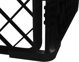 A kifutó négy falból áll praktikus kapuval. A zár kettős biztosítása megakadályozza a véletlen kinyitást, a lekerekített élek pedig minimalizálják a sérülés kockázatát. Az egyszerű dugaszolós rendszernek köszönhetően a gyors, szerszám nélküli összeszerelés gyerekjáték, és a kifutó könnyen áthelyezhető igény szerint.