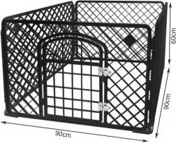 Megbízható megoldást keres, hogy kedvencének biztonságos és kényelmes helyet alakítson ki? Ez a műanyag kifutó univerzális felhasználást kínál kutyák, kölykök és apróbb állatok számára. A 90 × 90 × 60 cm-es méret elegendő teret biztosít a szabad mozgáshoz, míg a PP-ből és fém elemekből készült robusztus felépítés stabilitást és hosszú élettartamot nyújt.