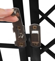 A dupla biztosítású ajtó megakadályozza a nem kívánt kinyitást, és biztonságban tartja kedvencét a kifutón belül.