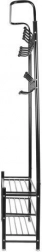 A praktikus ruhatartó állvány felső akasztós résszel és három alsó polccal kombinálja a kabátok, cipők, táskák vagy dobozok tárolását. Karcsú alapterületének köszönhetően tökéletes az előszobába, folyosóra vagy hálószobába, gyors hozzáférést nyújtva a gyakran használt darabokhoz.