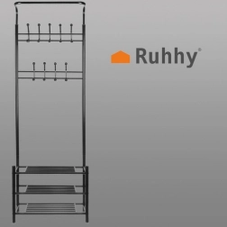 Tartsa előszobáját és hálószobáját tökéletesen rendezettnek ezzel a többfunkciós ruhatartó állvánnyal polcokkal. Kínál 3 tágas polcot cipőknek, 18 akasztót kabátokhoz és kiegészítőkhöz, valamint stabil fém vázat, amely helytakarékos, és megbízhatóan bírja a mindennapi terhelést.