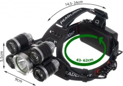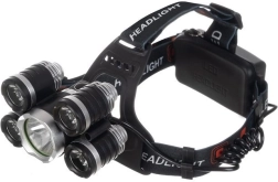 Nagy teljesítményű fejlámpa 5 LED CREE T6 diódával, 4 világítási móddal, 90°-ban állítható dőlésszöggel és kényelmes, rugalmas pánttal. A tápellátást 2× 6800 mAh akkumulátor biztosítja, a csomagban hálózati és autós töltő is található – ideális túrázáshoz, kerékpározáshoz, barkácsoláshoz és vészhelyzeti használathoz.