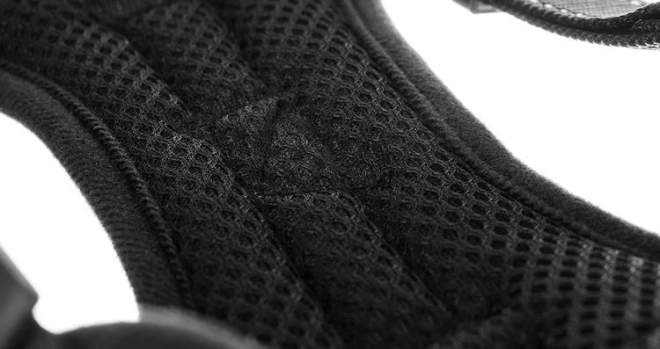 A nyomásmentes hámok védik a nyaki gerincet és a légutakat – a nyomás egyenletesen oszlik el a mellkason. Ez az S méretű modell tartós poliészterből készült puha pamut béléssel, kiegészítők: nejlon, PP és rozsdamentes acél. A belső hálóanyag légáteresztő a hosszan tartó kényelemért.