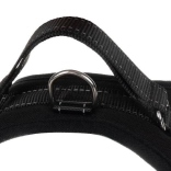 Kényelmes és biztonságos, nyomásmentes kutyahám közepes és nagytestű, akár 40 kg-os kutyáknak, amely nyugodt sétát és edzést biztosít. Az állítható pántoknak köszönhetően tökéletesen illeszkedik a nyakra és a mellkasra, erős csatokkal, felső fogantyúval és fém D-gyűrűvel a póráz számára. A nagyobb biztonság érdekében fényvisszaverő elemekkel van felszerelve, tartós anyagokból készül, és maximális kényelmet nyújt nyomás nélkül a mellkason és a nyakon.