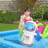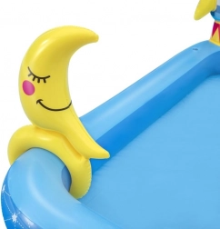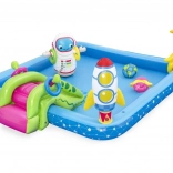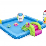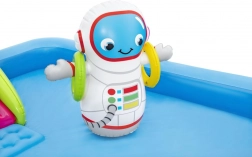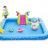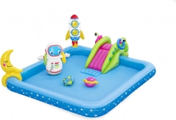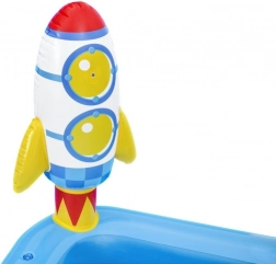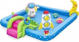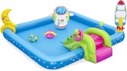 Nafukovós vizes játszótér Galaxie BESTWAY végtelen szórakozást nyújt a gyerekek számára. Ez a színes medence szett űr témával szórakoztató elemeket tartalmaz, mint például csúszda, szórófej és karikadobáló játék, amely kiváló minőségű PVC anyagból készült.