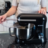 A 4,5 literes tál kiváló minőségű rozsdamentes acélból készült, és fröccsenésgátló védőborítást tartalmaz, amely segít tisztán tartani a keverés során.
