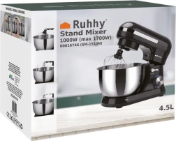 A Ruhhy 1700 W teljesítményű planetáris robot robusztus 4,5 literes rozsdamentes acél tálal rendelkezik, amely megkönnyíti a használatot az ergonomikus fogantyúnak és a fröccsenésgátló borításnak köszönhetően. Csúszásmentes tapadókorongok biztosítják a robot stabilitását a munkalapon. További előnyei közé tartozik a 8 sebességes vezérlés pulzáló móddal, ideális különféle konyhai technikákhoz, beleértve a habverést, keverést és dagasztást.