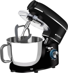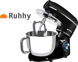 A 3 az 1-ben RUHHY univerzális konyhai robotgép egyesíti a bolygómixer működést, a 1,5 l-es üveg turmixgépet és a húsdarálót egy 2200 W teljesítményű készülékben. A 6,2 l-es rozsdamentes acél keverőtál fogantyúval, a 6 fokozat + PULSE és a három professzionális tartozék segítségével könnyedén habosíthat, keverhet, dagaszthat, emellett húst darálhat vagy smoothie-t készíthet. Tartozik hozzá fröccsenésvédelem és gazdag kiegészítőcsomag, beleértve a cukrász habzsákot is.