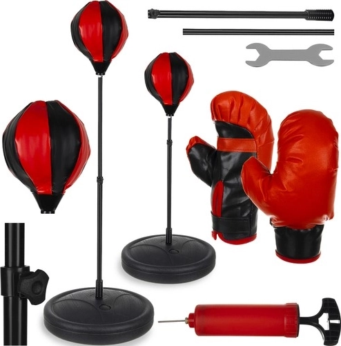 A boksz szett ideális különböző korú gyerekek számára, mert az állvány magassága 70 és 104 cm között állítható.