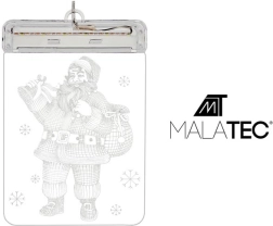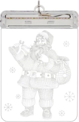 Stílusos ünnepi dekoráció – átlátszó LED vitrázs Mikulás motívummal, amely térbeli 3D hatást és meleg fehér fényt nyújt. A elemes tápellátásnak köszönhetően bárhová elhelyezhető kábelek nélkül, a tapadókorong könnyű ablakra szerelést biztosít. Tartós műanyag lézergravírozással a letisztult és elegáns megjelenésért.