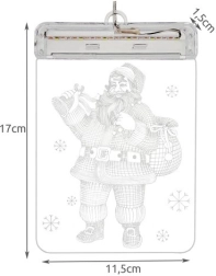 Varázslatos karácsonyi hangulat átlátszó LED vitrázzsal Mikulás motívummal. A kétoldalas kivitel belülről és kívülről egyaránt jól látható, a meleg fehér fény pedig gyengéden emeli ki az ünnepi atmoszférát. Ideális ablakra, vitrínbe, vagy éjjeli fényként a gyerekszobába.