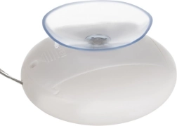 Az elemes működésnek (3× AAA) köszönhetően teljesen szabadon helyezhető el – kábelek és hosszabbítók nélkül. A szerelés pillanatok műve: az átlátszó tapadókorong ügyesen a teleptartó mellett kapott helyet, és nem bontja meg a dekoráció összhatását.