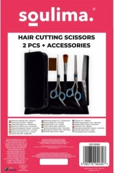 Ez az univerzális készlet mindent tartalmaz, amire szükség van a haj vágásához és formázásához nők, férfiak és gyerekek számára. A minőségi acélból készült klasszikus ollót fogazott élű ritkító olló egészíti ki a ritkításhoz és a természetes átmenetek kialakításához. A védőköpeny óvja a ruházatot, a praktikus cipzáras tok pedig mindent a helyén tart.