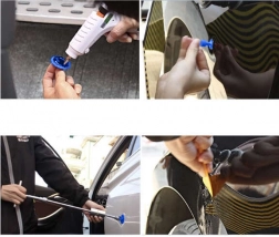 A készlet különféle formájú és méretű nylon táblák széles választékát tartalmazza, hogy pontosan illeszkedjenek a kisebb benyomódásokhoz és a nagyobb horpadásokhoz is.