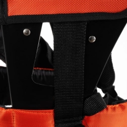 A hordozó hevederek fém kapoccsal vannak ellátva, amely lehetővé teszi a benzines láncfűrész gyors rögzítését és biztos tartását.