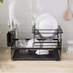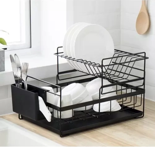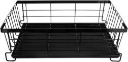 Ez a kétszintes edényszárító hatékonyan használja ki a pultfelületet: a felső szint akár 9 tányért befogad, az alsó ideális tálakhoz, poharakhoz és bögrékhez. A szénacél felépítés tartós felületkezeléssel ellenáll a nedvességnek és a mindennapos használatnak, míg a csúszásgátló lábak stabilitást és biztonságot nyújtanak nagyobb terhelés mellett is.