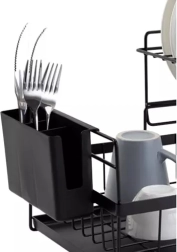 A tartozék levehető evőeszköztartó két különálló rekesszel az átlátható rendszerezéshez, valamint a könnyen tisztítható csepegtetőtálca, amely felfogja a vizet és szárazon tartja a konyhapultot. Az univerzális fekete kivitel és a letisztult vonalak loft stílusban tökéletesen illenek modern és klasszikus konyhákba is.
