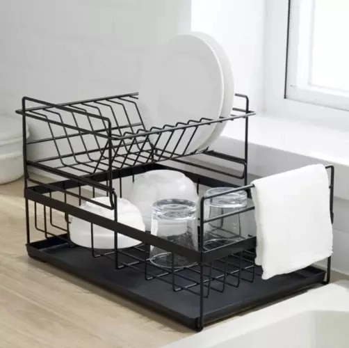 A felső szint akár 9 tányért befogad, az alsó ideális tálaknak, poharaknak és bögréknek. A két szintnek köszönhetően kevesebb helyen több edényt száríthat, és a pult rendezetten marad.