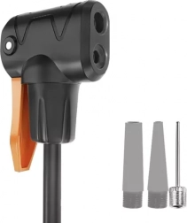 Univerzális, kétportos fej gyors rögzítő karral, amely autó- és kerékszelepekhez is illeszkedik. A készletben tűszelep labdákhoz és 2 kúpos fúvóka matracokhoz és egyéb felfújható eszközökhöz.