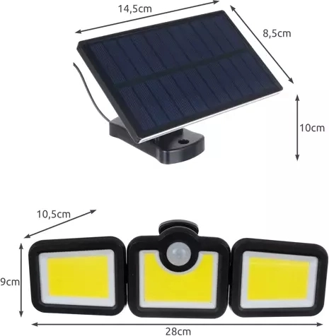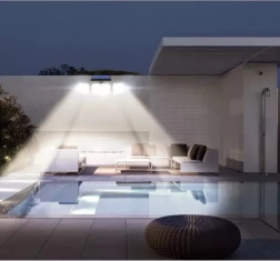 A lámpa mozgásérzékelővel van ellátva, amely reagál az emberek jelenlétére, és beállítható a fény szöge az optimális terület lefedésére.