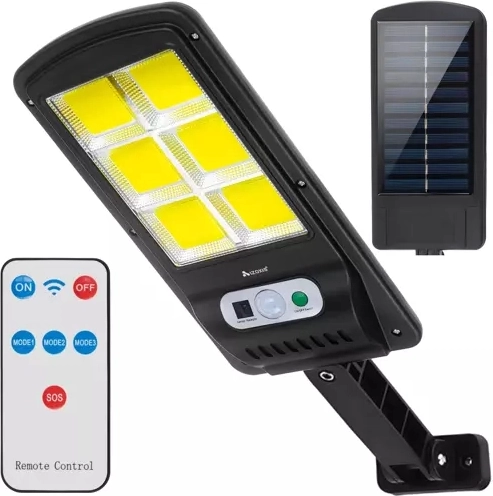 Erős napelemes LED lámpa kültéri használatra 120 COB diódával, amely környezetbarát és gazdaságos világítást biztosít otthonának, kertjének vagy teraszának.