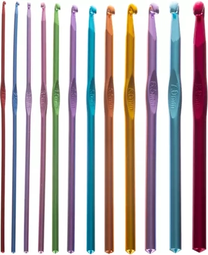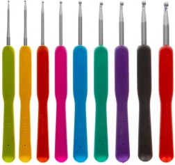 A készlet 21 színes, különböző méretű hurkolótűt tartalmaz ergonomikus kialakítással a könnyű és kényelmes használatért.