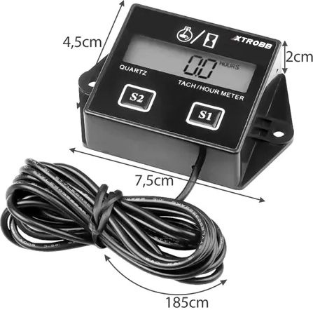 Az univerzális fordulatszám- és üzemóra-mérő Xtrobb ideális a motoros berendezések üzemidejének nyomon követésére. 0,1 órás mérési pontossággal és akár 9999,9 órás tartománnyal bármilyen környezetben megállja a helyét. Kompakt és könnyen kezelhető.