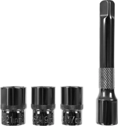 A csomag mindent tartalmaz: 3 fej 17/19/21 mm és hosszabbító a jobb hozzáférésért. A minőségi acél kivitel ellenáll az alakváltozásnak és repedésnek, a szilikon elemek pedig növelik a munkakényelmet. Tartozik hozzá strapabíró tok is, amely védi az eszközt tárolás és szállítás közben.