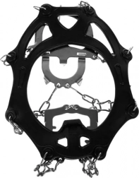 ROZSDAMENTES LÁNCOK ÉS MEGERŐSÍTETT SAROKRÉSZ – rozsdamentes acélból készült. Ellenáll a rozsdának és a korróziónak. Elég a rugalmas peremet ráhúzni és a cipőtalpra illeszteni. A karmoknem károsítják a lábbelit, mivel tökéletesen illeszkednek hozzá, és a megerősített sarokbetétek stabilitást biztosítanak, különösen lejtmenetben.